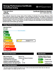 Similar to a domestic dwelling, a commercial EPC shows how energy efficient a building is and provides a rating from A to G. The certificate is produced using standard methods and assumptions about energy usage so that the energy efficiency of one building can easily be compared with another.